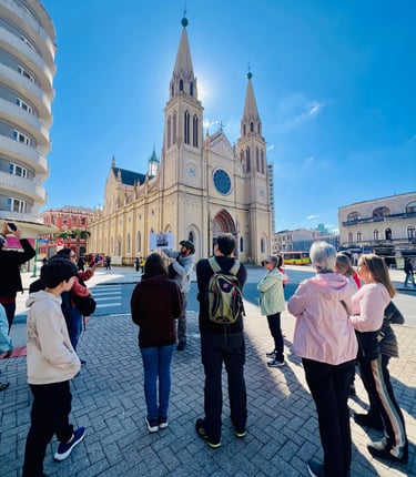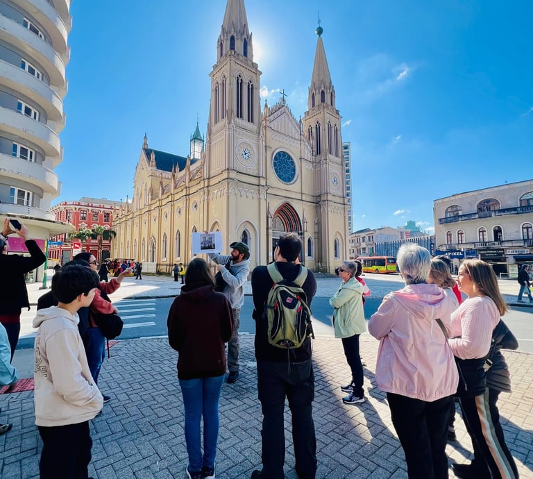 Rogério Bealpino é educador patrimonial há mais de 20 anos e realiza aulas-passeio ao público de todas as idades contando a história de Curitiba de forma prática e envolvente. Desta forma, faz os participantes terem experiências inesquecíveis com o patrimônio histórico e artístico da cidade.